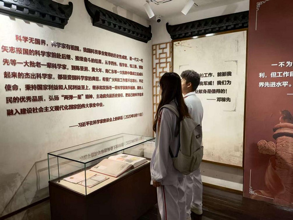 师生们怀着崇敬的心情步入这座徽派古宅,在讲解员的引导下,大家依次参观了各个展室,仔细观瞻了邓稼先先生生前的工作手稿、生活用品、历史照片以及复原的工作场景。一幅幅珍贵的图片、一件件朴素的实物,生动再现了邓稼先先生从立志求学、远渡重洋到毅然归国、隐姓埋名,最终为我国“两弹”事业呕心沥血、奉献终生的伟大历程。他“干惊天动地事,做隐姓埋名人”的崇高品格,以及面对艰难险阻时勇毅不屈的科学家精神,深深触动了在场的每一位师生。