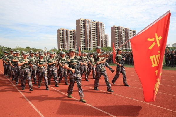 毕明生代表党政班子向迎江区人武部对我院大学生军训工作的大力支持表示衷心的感谢,向全体教官、辅导员老师以及为军训付出辛勤劳动的全体工作人员致以崇高的敬意。他指出,军训是大学生接受国防教育、增强国防意识,培养国防观念的重要途径。通过军训,同学们提升了军事技能,拓展了军事知识,感受和体验到了新时代中国军人的品格和作风,深化了对习近平强军思想的理解和认识,进一步增强了爱国情怀。他寄语新同学把在军训过程中练就的优良作风和拼搏精神继续保持下去,在学习上勤于吃苦、勇于探索;在生活上严于律己、乐于奉献;秉持“勤学笃行、德技双馨”的校训,努力把自己打造成德才兼备的社会主义建设者和接班人。
