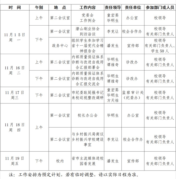 2021-2022学年第一学期第12周(11.15-11.19)工作安排