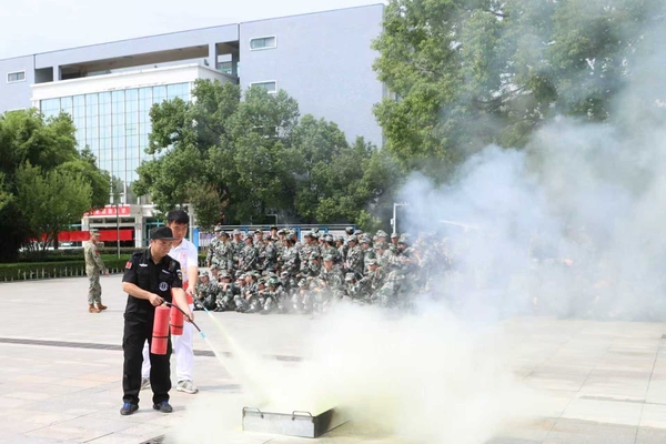 在灭火器材实训操作环节,消防员现场演示了灭火器的正确使用方法,并组织新生现场实地操作练习。通过实操,大家掌握了灭火器的使用技巧,增强了应对初期火灾的信心和能力。