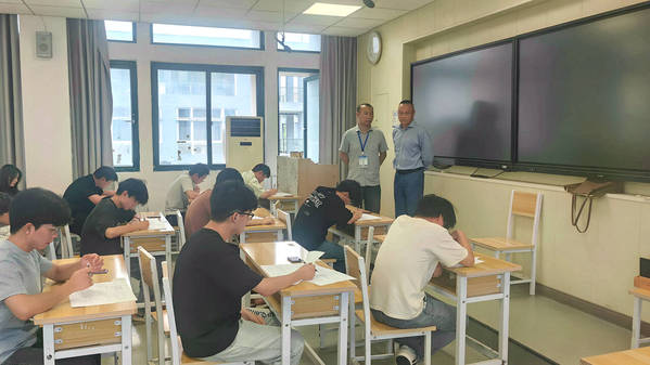 巡考过程中,校领导重点查看了考场环境、监考教师履职情况及学生考试状态。从巡查情况来看,各考场布置规范、秩序井然;监考教师严格执行监考流程,认真履行监考职责;学生们遵守考场纪律,专注答题,展现出良好的精神风貌。校领导对考场的组织安排和考务管理工作给予了肯定,同时就部分考场的细节优化提出了具体建议。