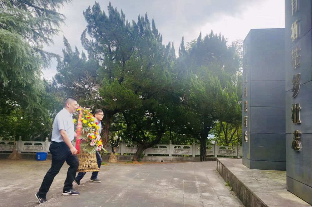 在庄严的革命烈士纪念塔前,全体党员鞠躬默哀、敬献花圈,深切缅怀革命先烈。通过当地向导的介绍,烈士们战斗的画面仿佛一幕幕地展现在大家面前,描述着一个个可歌可泣的英雄形象。