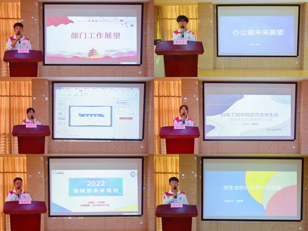 大会伊始,由学院团总支书记为此次会议致开场词。随后,团总支学生会主席团、各部门部长携各部门优秀志愿者代表依次对本部门一年的工作情况做了总结,从思想引领、部门建设、部门总结,未来展望四个方面进行了述职。述职报告以PPT展示和演讲的形式进行,其中既有各部门工作亮点内容,也有对自身日常工作不足深刻总结和下一步的提升计划。
