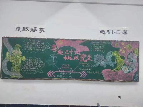 此次黑板报评比活动得到了广大师生的积极响应。各班辅导员、班主任老师亲自参与策划,带领班级同学从主题方向、整体设计、内容色彩等方面做了精心的构思和布置。在大家的共同努力下,一块块主题鲜明、色彩艳丽、图文并茂的黑板报出现在了众人眼前。同样的主题,不一样的风采,各班解说员同学对板报的设计理念、主题教育意义做了详细解说,展示出各班独有的特色。