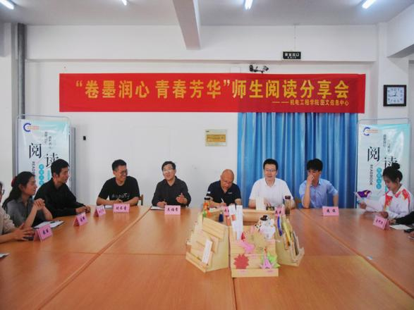 为提高广大学生阅读兴趣,迎接读书日,营造浓厚校园书香氛围,4月19日中午,机电工程学院在图文信息中心二楼阅览室开展“卷墨润心,青春芳华”师生阅读分享会。图文信息中心主任许迪楼,学院党总支副书记徐英武,学院副院长吴福贵出席分享会。专职辅导员代表及2021级、2022级学生代表参加分享会。