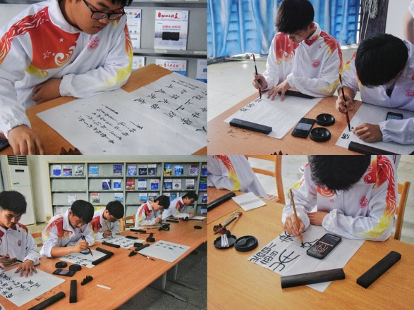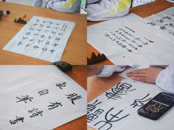 分享会上,书法爱好者展示书法环节,给我们带来汉字的魅力。古筝爱好者现场献艺,抚琴清歌,体现了中华文化的高雅。琴声瑟瑟,香薰袅袅的活动现场,吴福贵老师与书法爱好者同台泼墨挥毫,共同书写经典名句,交流书法经验心得。