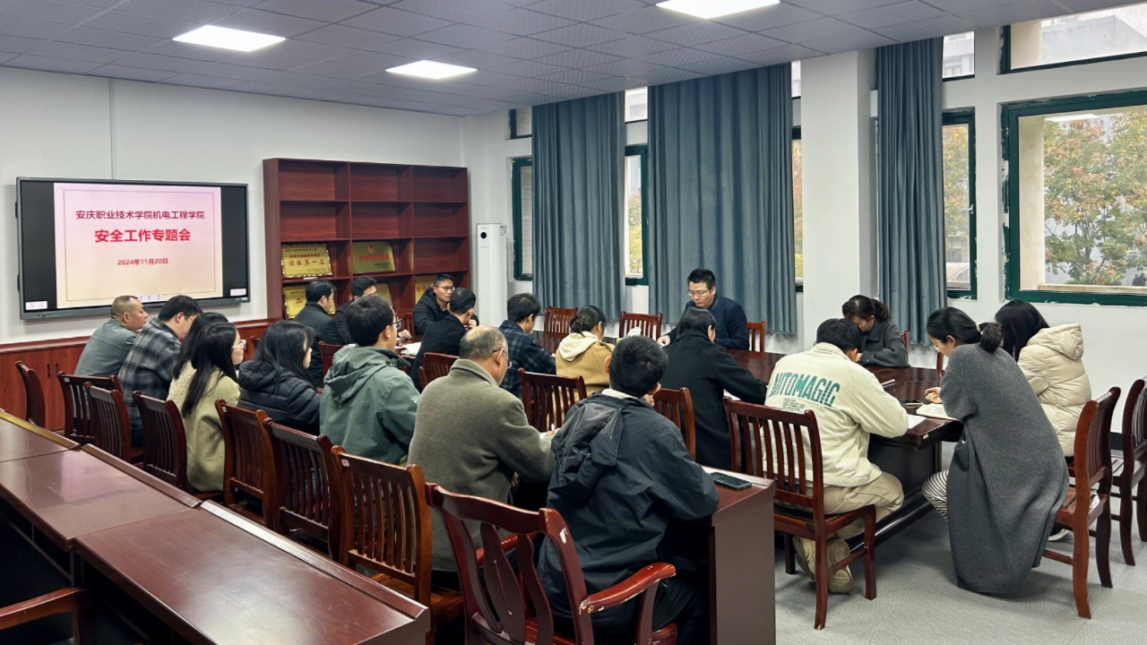为进一步加强学生安全管理工作,创建和谐平安校园,11月20日下午,机电工程学院在1号教学楼208会议室召开学生安全工作专题会议,机电工程学院党总支副书记徐英武、学生管理科科长、全体辅导员、班主任参加会议,会议由徐英武主持。