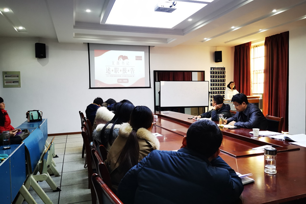 1月11日下午,现代商务学院在3号教学楼417会议室开展党支部书记述职和安徽省出席党的二十大代表候选人提名推荐工作,全体党员参加了本次会议,院党总支书记、院长高飞主持会议。
