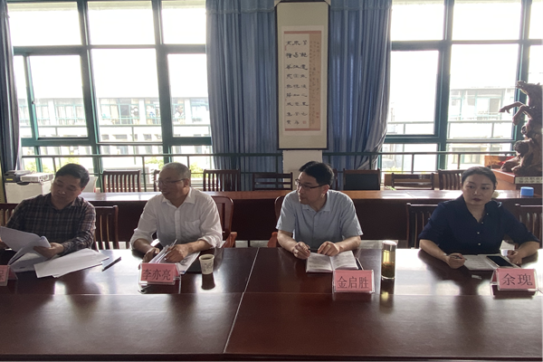 金启胜作动员讲话,他传达了毕校长在学校教学工作委员会会议上关于省赛备赛工作的指示精神,充分肯定了参赛团队前期付出的努力和取得的成绩。金启胜指出,第一,为了在省赛中获得较好成绩,就必须从“选人”和“选题”两个方面整合资源、突出优势;第二,对照校决赛专家评委和校内专家提出的意见,继续打磨修改,不断完善作品;第三,学习近三年来国赛、省赛获奖作品,汲取先进经验做法,取长补短;第四,学院要全力做好备赛期间的统筹安排和各项保障。