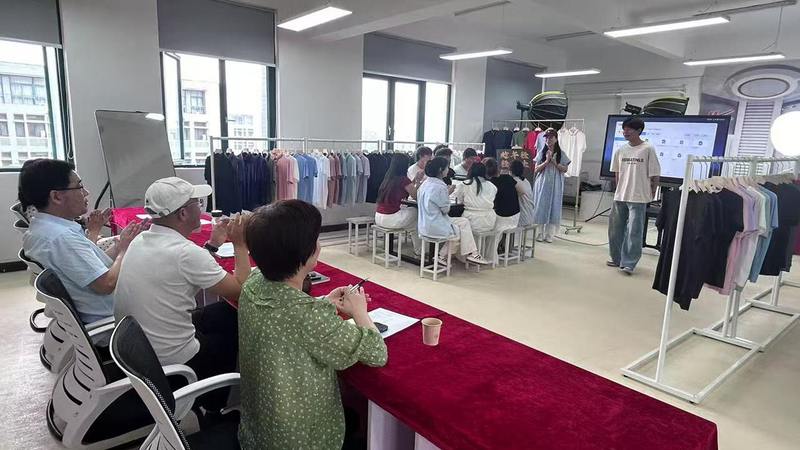 现代商务学院2024级云霁电商校企合作订单班自开班以来,积极构建“企业主体+学院协同”的育人框架,采用视域电商营销中国特色学徒制教学模式开展实践教学。企业师傅指导学生开展新媒体电商直播知识、模拟直播实训及考核、企业带货实战等3个项目的实践教学,多次带领学生赴安庆筑梦新区电商产业园和宿松县省际智慧云仓电商示范园体验直播业务。为检验中国特色学徒制校企合作订单班教学效果,6月12日上午,现代商务学院在校企共建实训室举办特色学徒制直播电商订单班人才培养成果汇报会。现代商务学院院长金启胜,安徽云霁电商公司负责人、安徽省产业教授汪义德,以及现代商务学院教学负责人、相关专业负责人、订单班师生代表参加。