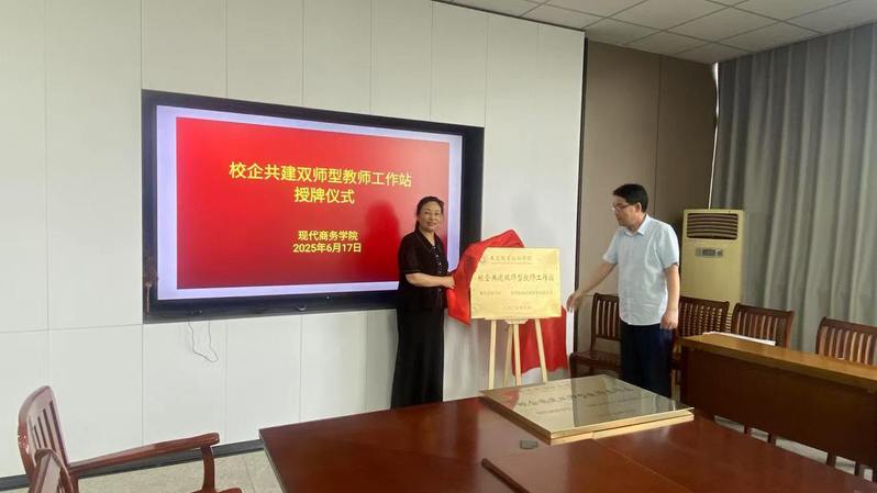 现代商务学院与两家企业举行“校企共建双师型教师工作站”授牌仪式