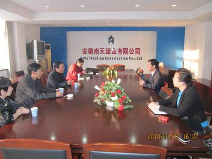 在“南天建设”,江书记同集团朱总经理、人事部刘主任进行了会谈,他感谢企业领导对我院教育教学的支持,为人才培养所作的贡献;询问了学生的实习情况;征求了企业对我们人才培养的要求;表达了深层次合作的意向。朱启富总经理对江书记的来访表示热烈欢迎,对我院实习生吃苦耐劳、坚持一线工地的务实作风高度评价,表示要积极吸收我院毕业生,壮大企业。
