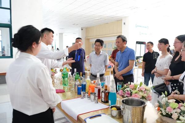 此次大学生文化艺术节包括两大部分,第一部分是各专业学生别出心裁的手工作品展,校领导童宏葵、毕明生、李克让、谭维奇、程飞、陈继平、吴何珍、李五一出席并指导展览活动。展出的手工作品包括剪纸、褶皱纸花束作品、优秀阅读笔记、不同主题的绘画作品以及酒店管理和旅游管理专业的精美的插花作品、精湛的茶艺表演和调酒展示。酒店管理专业学生舒家乐为观展师生介绍了“龙舌兰日出”、“玛格丽特”等鸡尾酒的调制过程和创作者背后的故事传说。童书记亲切地询问学生专业学习情况,并鼓励学生学好专业技能,做新时代的能工巧匠。