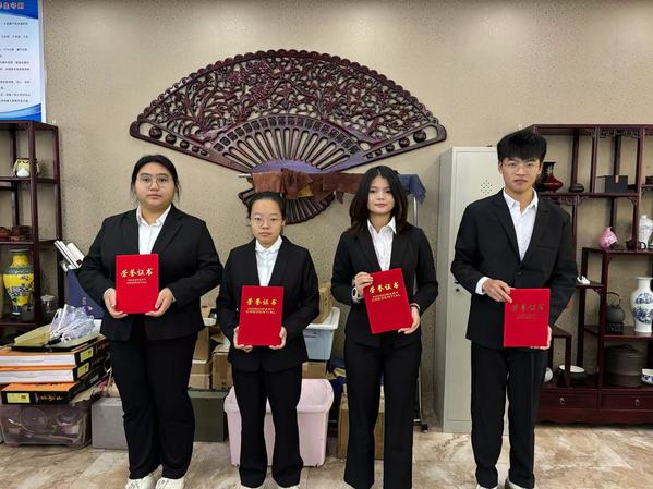 茶艺展示区,茶香袅袅。参赛选手统一身着制服,举止优雅,娴熟地进行着温杯、投茶、注水、出汤等一系列操作。茶叶在水中舒展,茶汤清澈明亮,散发着阵阵清香。同学们围坐一旁,静静地欣赏着茶艺表演,感受着中国传统文化的魅力。茶艺比武中王阿宝同学荣获一等奖,李紫怡同学荣获二等奖,陈一豪同学荣获三等奖。
