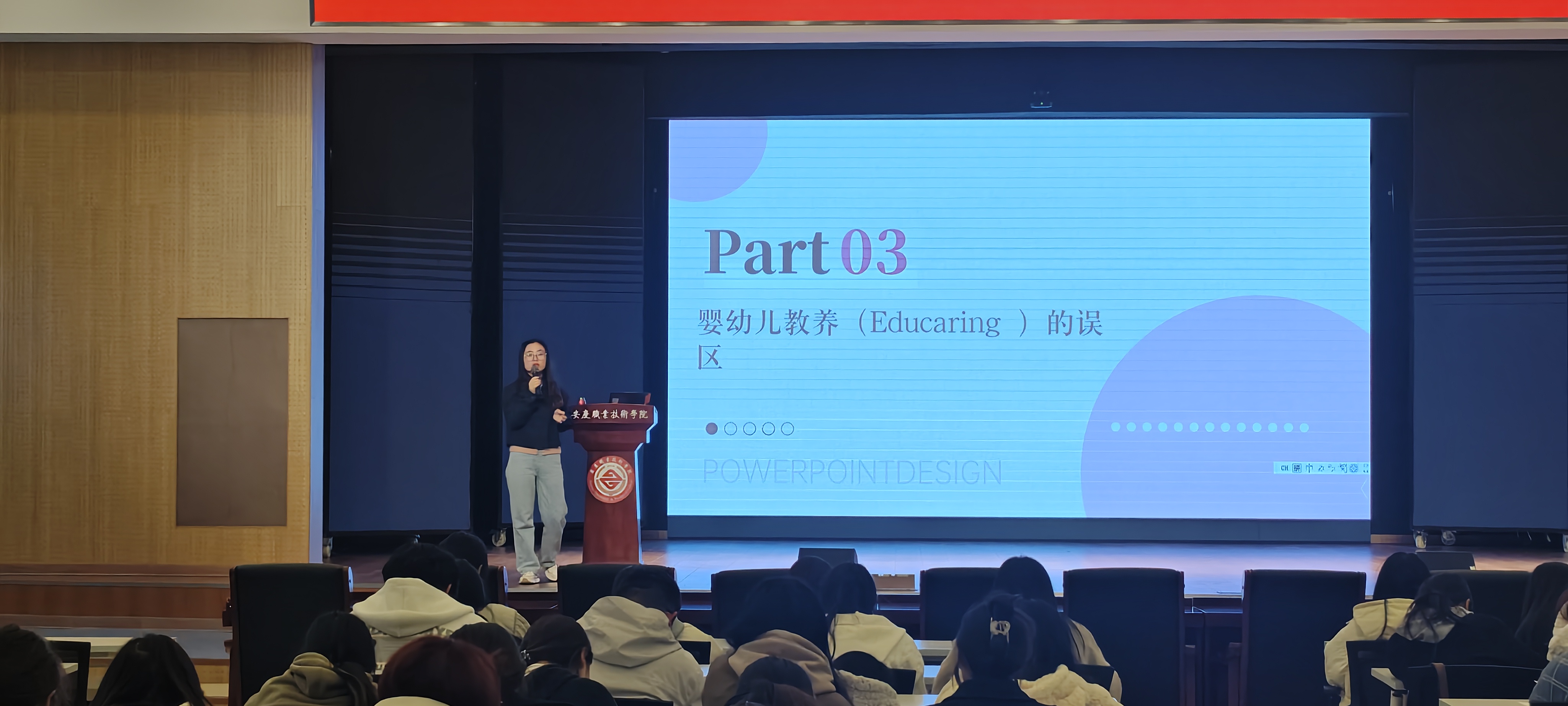 11月26日,管理服务学院邀请安庆师范大学方芳博士为婴幼儿托育服务与管理专业和早期教育专业的师生开展行知讲堂。该专业部分教师及200余名学生参加了讲座活动。