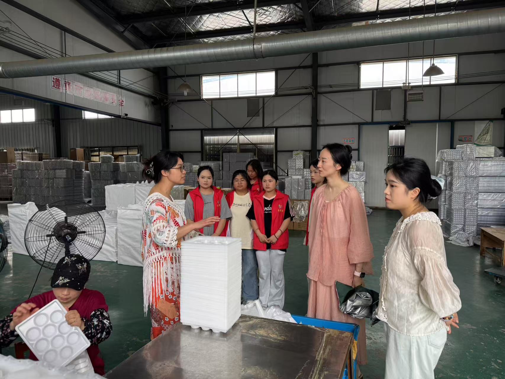 为探索非遗资源赋能乡村振兴的实践路径,师生们深入调研了花元村的帮扶车间。他们详细了解车间的运作模式、产品种类及其在创造本地就业、带动村民增收方面的实效。整洁的环境和村民专注的工作状态,生动展现了产业帮扶的活力。此行的重要收获在于,团队将非遗元素与乡村产业发展联系起来思考,积极与村民和车间负责人探讨如何将“花元胡氏龙灯”的文化符号、工艺美学融入乡村特色产品或文旅体验中,为乡村产业的差异化发展提供新视角。