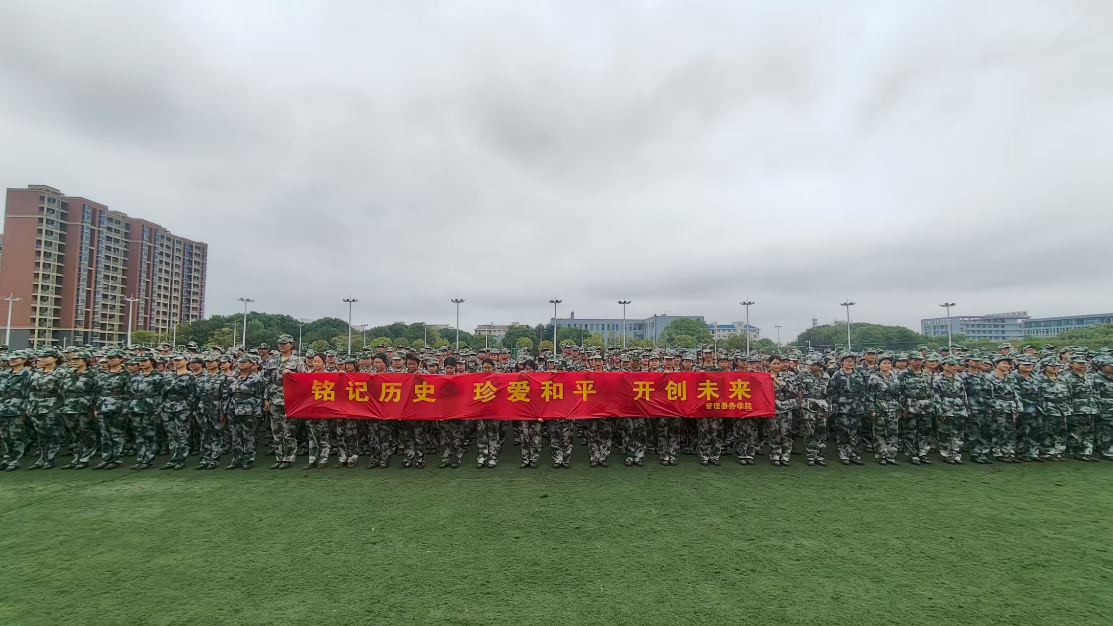 9月18日上午,学院军训场地庄严肃穆,全体2025级新生、军训教官及辅导员共计600余人齐聚操场。上午九点十八分整,防空警报鸣响,全体人员列队肃立,低头默哀,传递对遇难同胞的深切缅怀。现场的“铭记历史 珍爱和平 开创未来”横幅与新生们挺拔的军姿交相辉映,新生们纷纷表示军训期间要端正态度,站好军姿,练好习惯。