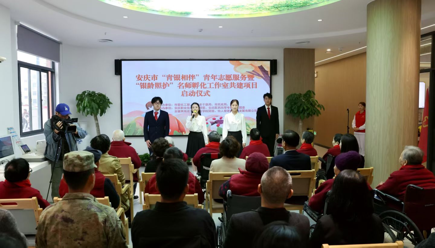 10月26日上午,安庆市“青银相伴”青年志愿服务暨“银龄照护”名师孵化工作室共建项目启动仪式在怡人堂晶海...