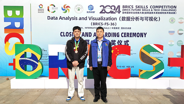 近年来,学校和信息技术学院高度重视大赛选手选拔和集训工作,将组队参加金砖大赛作为融入国际交流合作、提升人才培养质量的一项重要举措。我校将继续秉承“以赛促教、以赛促学、以赛促改、赛课融通、赛训结合”的竞赛理念,积极参与组织金砖国家国际交流、学术会议、职业技能大赛、国际团体标准制订等工作,进一步提高学校国际化办学水平,稳步提升学校的国际影响力,为“职教出海”贡献自己的力量。(文、图:陈小祥 审稿:疏国会)