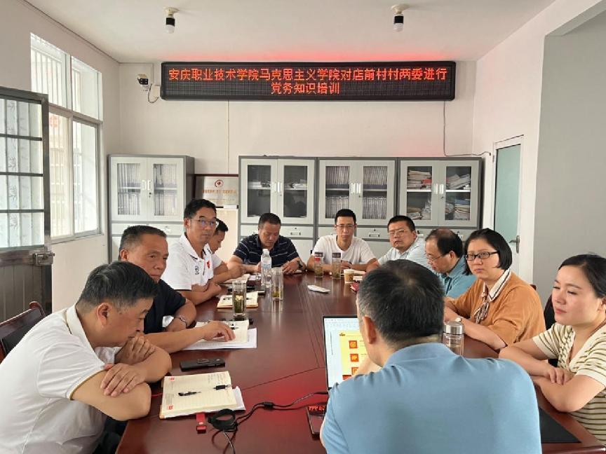 马克思主义学院朱松节教授对店前村党总支和三个支部的支委成员和驻村工作队进行了党务理论知识和实践能力培训。系统讲解了基层党务工作基本知识,重点阐述了党支部的机构设置、基本任务、工作机制、组织生活、民主建设等内容,旨在充分发挥基层党组织战斗堡垒作用,推进基层党建工作规范化标准化,推进基层党建工作提质增效,把学习成果转化为实实在在的工作举措。