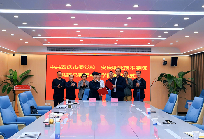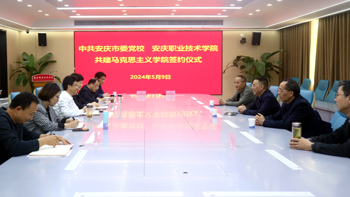 为进一步加强我校思想政治工作,5月9日我校与中共安庆市委党校举行“共建马克思主义学院”签约仪式。校长毕明生、安庆市委党校副校长程鹏出席签约仪式。市委党校教育长徐继明和相关部门负责人,我校党委委员、宣传部部长吴何珍以及马克思主义学院相关同志参加签约仪式。