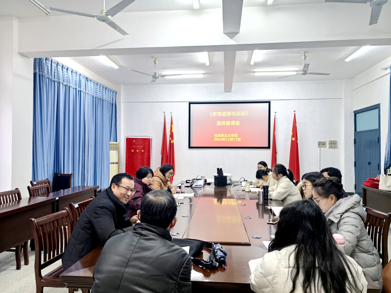 为加强学科间的交流与合作,共同推动思政课创新发展与教师队伍教学质量提升,12月11日下午,马克思主义学院在3号教学楼106会议室开展《思想道德与法治》集体备课会。本次备课会特别邀请机电工程学院专业课教师舒满征和农林与服装学院专业课教师朱秀蕾出席,马克思主义学院院长余锋,部分课程组教师参加会议。