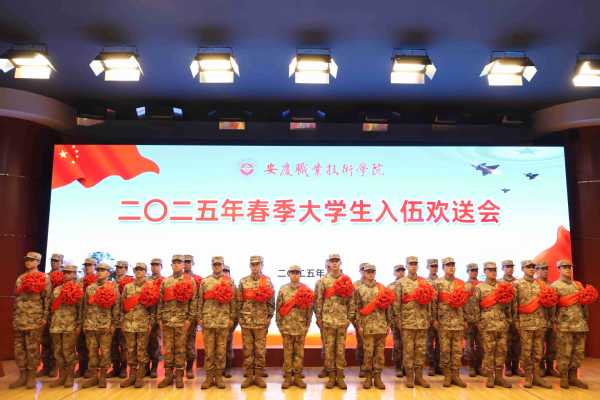 “一人入伍全家光荣,一生参军全校相送。”3月14日下午,我校2025年春季大学生入伍欢送会在图文信息中心一楼报告厅举行。校党委副书记、校长毕明生出席活动并讲话,迎江区人武部领导同志,校党委委员、统战部部长李五一,全国模范退役军人、皖北烈士陵园许玉亭红色宣讲工作室负责人许玉亭出席。二级学院主要负责同志、分管负责同志、征兵专干、毕业班辅导员,校征兵工作站全体人员,在校生代表,入伍毕业生及家长代表近500人参加。