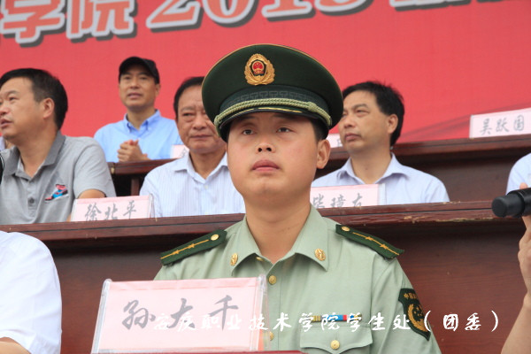武警带队干部孙大千勉励同学们要把军训中表现出的顽强拼搏、严守纪律等优良作风带到学习生活中去,勤奋学习、努力工作、奋发图强、勇攀高峰。机电工程系李干同学代表2015级新生军训学员作了发言。