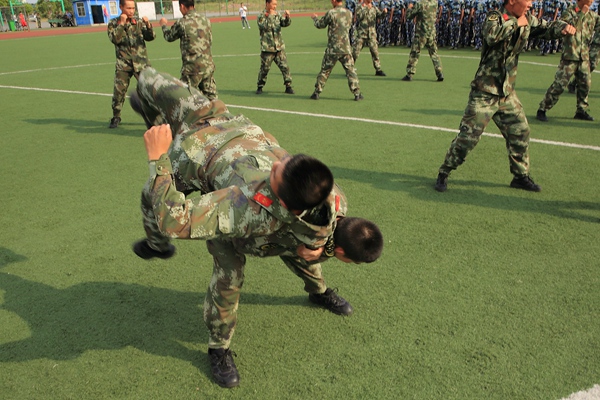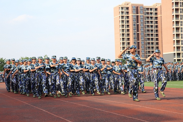 下午3点,大会在激昂庄重的国歌声中拉开帷幕。随着指挥员一声令下,27个方队进行分列式表演,伴着铿锵的旋律,迈着整齐的步伐,同学们英姿飒爽,神采飞扬,以挺拔的军姿、如虹的气势,喊着嘹亮的口号,昂首挺胸、意气风发地从主席台前正步走过,用优异的表现给为期10天的军训画上了圆满句号。分列式结束后,军训教官进行了擒敌拳综合表演,教官动作规范娴熟、刚劲猛烈、孔武有力,赢得了全场的阵阵掌声。