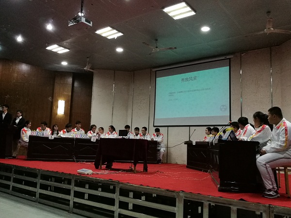 本次比赛共分——秀我风采、志在必得、争分夺秒、心有灵犀,扭转乾坤五个环节。在比赛中,选手们沉着冷静、配合默契,在各环节中均发挥出色。“秀我风采”环节选手表现的落落大方,展现了各系团队的精神风貌;“志在必得”环节选手们胸有成竹、沉稳答题;“争分夺秒”环节(抢答题)场上的气氛一下子变得紧张起来,选手们聚精会神的听着抢答器的倒计时争夺答题权;“心有灵犀”环节考验的是选手们的默契,各种时下流行词汇被选手们惟妙惟肖的表现出来,选手们的机智聪明赢得了场下观众的掌声。