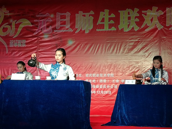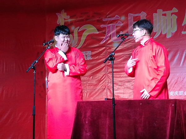 晚会在青春热舞《向快乐出发》中拉开帷幕。歌曲《光辉与友情岁月》、《小城故事》、《一万次悲伤》,师生分别演绎经典、向经典致敬;吉他弹唱《春风十里》娓娓道来诉说大学生美好的情愫;传统相声表演《我要上元旦》中捧哏、逗哏技巧表演得淋漓尽致;原创小品《奇葩招聘会》立意高,师生联袂表演凸显了大学生就业中面临的问题,教育学生在校期间要把握大好时光好好学习;服装及礼仪展示《古往今来·服装礼仪秀》、茶艺表演《茶香悠悠》呈现了学生良好的专业素养,给观众带来美的享受;教师黄梅戏表演《当官难》,让现场观众感受了传统戏曲的魅力和韵味;军体拳表演《永不褪色的迷彩》展现了当代军人过硬的军事素养和良好的精神风貌;动感充满张力的舞蹈《三元素空间》、蒙族传统筷子舞《欢哥》、传统武术及舞狮表演《武·狮》更是嗨爆全场。