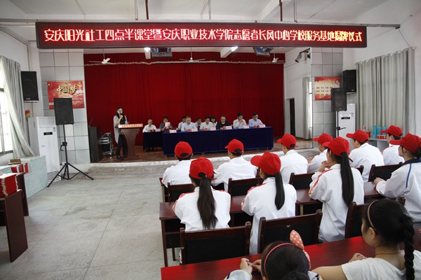 汪志耿代表迎江区政府讲话,她首先肯定了该项目的社会意义,并对我院志愿服务队伍在安庆市争创全国文明城市等大型活动中的积极表现予以充分的赞扬,同时对“四点半课堂”志愿服务项目提出希望:一是志愿者要提高认识、认清责任,用行动服务好学校学生、用热情温暖留守儿童的心灵;二是积极营造志愿服务的氛围,传承中华民族的美德,真抓实做,提高服务质量和效果;三是积极打造志愿服务特色, 推进志愿服务常态化。