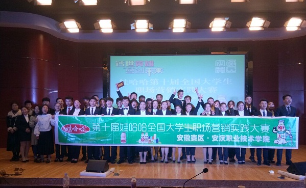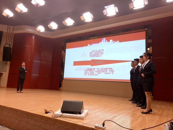 煮酒论英雄,营销赢天下。11月26日晚,为践行十九大精神“进社团”实践活动,响应“大众创业 万众创新”的号召,落实“以能力和职业发展为导向”的人才培养要求,院营销与管理协会主办的“第十届娃哈哈大学生创业营销实践大赛”于图文信息中心一楼报告厅举行。比赛特邀朱镇斌、赵晓彬、娃哈哈安庆经销商何宏四担任评委。经过层层筛选,共有七支队伍脱颖而出跻身决赛。近500名学生一同观看了比赛。