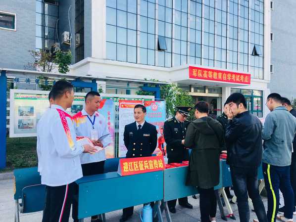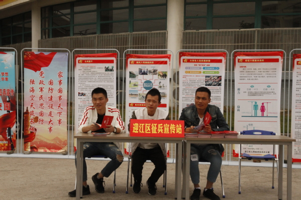 4月16日与25日,我院武装部与安庆市迎江区武装部在校园内共同举办了两场大学生征兵宣传活动。在图文信息中心广场、食堂前广场、教学楼大厅,通过设立征兵咨询台、摆放宣传展板、悬挂宣传标语、发放征兵宣传手册、播放军事视频资料、现场答疑等形式,向同学们就大学生入伍身体条件、政治要求、义务兵优待、大学生优惠政策、学费资助、复员退伍军人安置等相关政策进行了介绍与宣传。