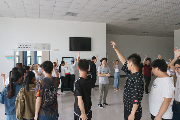 活动伊始,五位来自安庆师范大学的学生助理对在场人员进行分组,并担任各团队教练。每支队伍在设计了自己的队号、队徽、队旗、队歌后,就开始了愉快的游戏活动,不仅有锻炼个人反应能力的“教练说”、“美女,流氓与警察”活动,还有考验团队合作以及相互信任的“空手夺金”活动。在这次心理素质拓展活动中,同学们的身心得到了放松,个人能力得到了提高,同时也在愉快的活动体验中明白了集体的重要性。