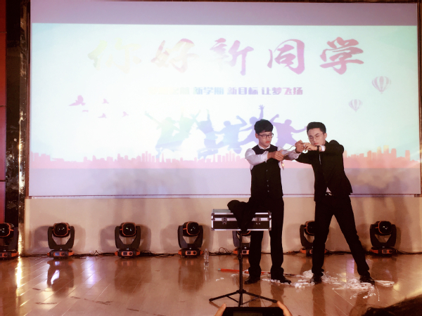 吉他弹唱《都选C》拉开了整场晚会的帷幕,磁感的歌喉,灵活的手指拨动吉他的琴弦,架子鼓动感的节奏敲打着在场的每一个人。舞蹈《疯》、《唯美拉丁》、《KING》可谓是嗨翻全场,音乐响起,伴着动感的节拍,跳动轻快的脚步,挥洒舒放的手臂,扭动柔活的腰身,绽放灿烂的笑容,散发出青春的朝气,展示着舞蹈的魅力。歌曲《遇见》、《海阔天空》、《老男孩》传递出的不仅是对音乐的热爱,更是对学弟学妹的祝福。古筝弹奏《战台风》曲调气势磅礴,音乐形象鲜明,快速段落紧张激烈,慢速段落优美抒情,塑造了码头工人大无畏的精神和压倒一切困难的英雄气概。茶艺协会双胞胎表演《并蒂莲》可谓是花开并蒂莲,人有双生花。魔术表演令现场观众目不暇接、大声称奇。军事爱好者协会带来的《格斗术》用行动展现出青年人的豪迈气概与血气方刚。