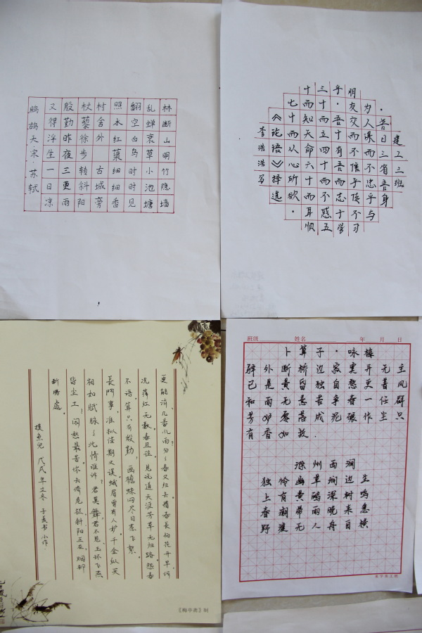 比赛分为硬笔书法和软笔书法两组进行,硬笔组约100人参赛,软笔组约50人参赛。现场比赛环节,选手们都很快进入了状态,有的一笔一划、认真专注,有的气韵生动、一气呵成。比赛结束,一幅幅的颇具神韵书法作品呈现了出来,或苍劲有力,或隽永飘逸,或清秀雅致,充分彰显了我院学生较为深厚的书法技艺。