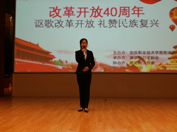 经过前期面向全院学生的的海选初赛,9名同学登上决赛的舞台,围绕“讴歌改革开放,礼赞民族复兴”主题一展演讲风采与口才魅力。比赛分为自我介绍、主题演讲、才艺展示三个环节。自我介绍环节:形式多样有的从介绍自己家乡引入,有的介绍个人兴趣爱好等;主题演讲环节:选手们分别从改革开放40年来的经济发展、家乡面貌发生的巨变、邓小平提出的改革开放等方面以小见大,由点到面,结合个人经历,娓娓道来,深情讲述了改革开放四十年来的巨大变化;才艺展示环节:选手们各显其能,舞蹈、歌曲、手语表演等形式精彩的表演,只为赢得听众微信点赞一票的支持。