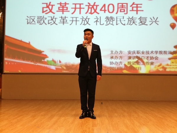 为庆祝改革开放四十周年,院演讲与口才协会在图文信息中心一楼报告大厅举办“讴歌改革开放,礼赞民族复兴”主题演讲比赛。比赛特邀吴紫英、闻胜海、赵晓斌、王晓林四位老师担当评委,近400名学生代表观看了本次比赛。