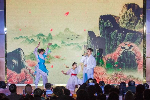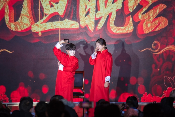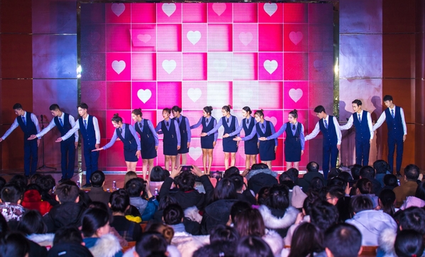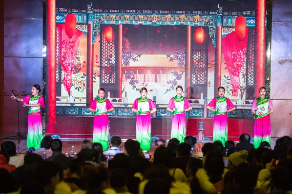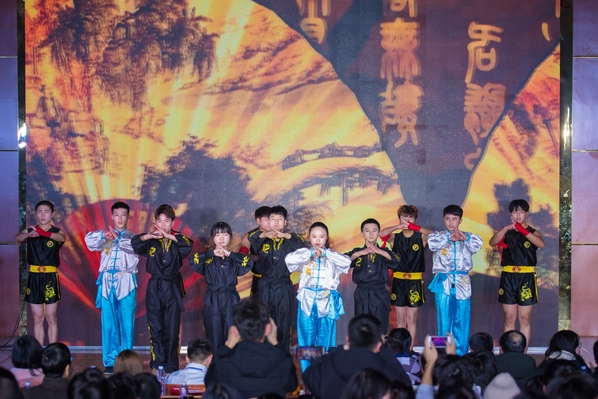 明丽的声线,欢腾的气氛,晚会在乐队弹唱《光年之外》中劲爆开场;舞蹈《青春飞扬》、《星火》、《Homie》柔软的身姿、极具张力的舞蹈,收获了观众的热烈掌声;别样音乐情景剧《我们的生活》取材于校园生活,轻快活泼的旋律给观众带来了不一样的视听盛宴;充满新意的杯子舞让观众在《稻香》之中感受到节拍的美妙;由建筑工程系带来的舞蹈《新时代的建筑工匠》紧贴参演人员专业特点,展现了新时代大国工匠的雄姿;古风舞蹈《千年游》、《不染》、民族舞《竹林深处》可谓美轮美奂,细致至指尖的动作让人不禁啧啧称赞;《黄梅戏联唱》唱腔委婉动听、表演惟妙惟肖,生动传神地为现场观众演绎了黄梅戏这一地方戏曲剧种;两位女同学带来的《双簧》表演,夸张的表情、逗笑的语言爆笑全场;吉他弹唱《姑娘》柔美的嗓音诉说年轻人对美好生活的追求;《礼仪展示》通过演绎坐姿、站姿、握手、道别等场景的礼仪,给现场的师生示范了生动的教学课;来自幼儿教育专业的同学们带来的合唱表演《当你老了》,较高的艺术水准带给现场同学美的享受;服装走秀《时代的演变》展示了中国古典汉、唐等朝代的传统服装魅力,另外有服装设计协会设计制作的10个系列共20套校园男女校服充分展现了专业特色、引领校园美学新风尚;教工艺术团的老师带来的朗诵《唐诗里的中国》、歌曲《我的未来不是梦》师生同台共迎新年,真真正正让同学感受到这是一个温暖、和谐大家庭的狂欢夜。武术表演《风云聚.武天下》融合传统武术套路、散打、剑术、硬气功、双节棍等表演,演员非凡的实力表演嗨翻全场。整场晚会流行与古典兼收,温情与火热并举,形式多样,精彩纷呈。