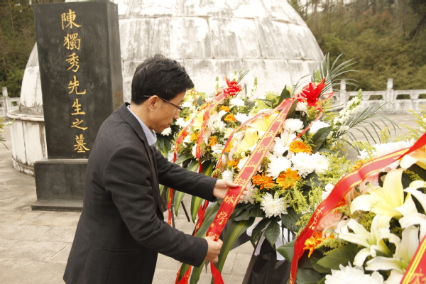 刘克胜在致祭扫辞时指出,陈独秀先生是新文化运动的旗手、五四运动总司令。我们缅怀陈独秀先生,就是要学习先生追求真理、恪守信念、矢志不渝的高贵品格,就是要弘扬先生爱国忧民、坚贞不屈、勇往直前的革命精神,进一步凝聚起爱国爱党、开拓奋进的磅礴力量,肩负起中华民族伟大复兴中国梦的崇高使命。要不忘初心、牢记使命,继承发扬伟大的爱国主义思想;要坚持以人民为中心,继承发扬为民谋福祉的崇高理想;要勇于改革创新,继承发扬不懈奋斗、奋勇直前的进取精神,以优异成绩庆祝新中国和人民政协成立70周年。