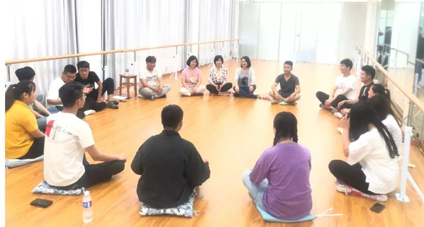 舞动治疗是运用舞蹈活动过程或即兴动作促进个体情绪、情感、身体、心灵、认知和人际等层面的整合,可以治疗身心障碍,可以增强个人意志,改善心智。严老师带领活动参与者运用舞蹈肢体动作进行促进个体情绪、身体认知和社会整合的心理治疗体验。