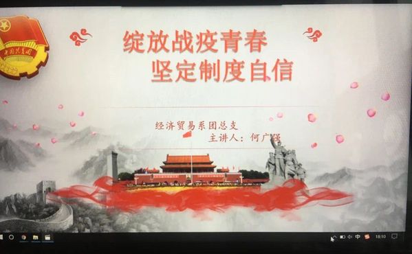 院团委积极组织我校新团干走上“云”端,开展“绽放战疫青春·坚定制度自信”主题网络团课活动。此次网络团课旨在讲清楚以习近平同志为核心的党中央对疫情防控工作的坚定信心、坚强领导和英明决策,引导青少年深刻领会党的集中统一领导是中国特色社会主义制度的最大优势,进一步增强“两个维护”的自觉性和坚定性;讲清楚在重大疫情面前全国上下的空前团结和众志成城,引导青少年深刻领会“全国一盘棋”的制度优势;讲清楚我国在抗疫斗争中展现出的强大组织动员能力,引导青少年深刻领会“调动各方面积极性、集中力量办大事”的制度优势;讲清楚我们党始终把人民群众生命安全和身体健康放在第一位的责任担当,引导青少年深刻领会“坚持以人民为中心的发展思想,不断保障和改善民生、增进人民福祉”的制度优势;讲清楚中国在全球疫情防控中展现的大国担当,引导青少年深刻领会我国“积极参与全球治理,为构建人类命运共同体不断作出贡献”的制度优势。