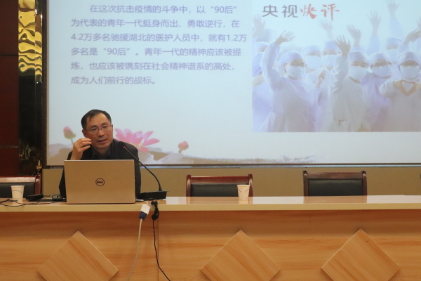 10月16日晚,马克思主义学院院长朱松节应邀作《坚定制度自信 担当时代使命》专题讲座。200名二级学院学生代表到场聆听了讲座,同时2020级其他新生通过网络直播收看讲座内容。