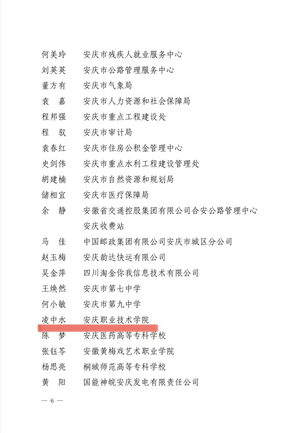 近日,共青团安庆市委员会、安庆市人力资源社会保障局印发了《关于命名2021年度“安庆市青年岗位能手”的通知》,我校教师凌中水喜获2021年度“安庆市青年岗位能手”荣誉称号。