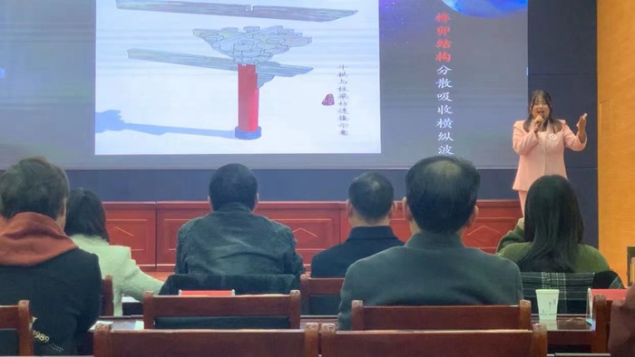 在本次大赛中,商务学子胡欣苑以“当地震遇上神秘的中国力量”为主题,向观众介绍了地震的基本原理、古人的防震措施以及古代建筑在防震方面的原理等方面的知识。她通过生动的3D建模和形象的语言,将复杂的科学原理变得简单易懂,让观众对地震有了更深入的了解。