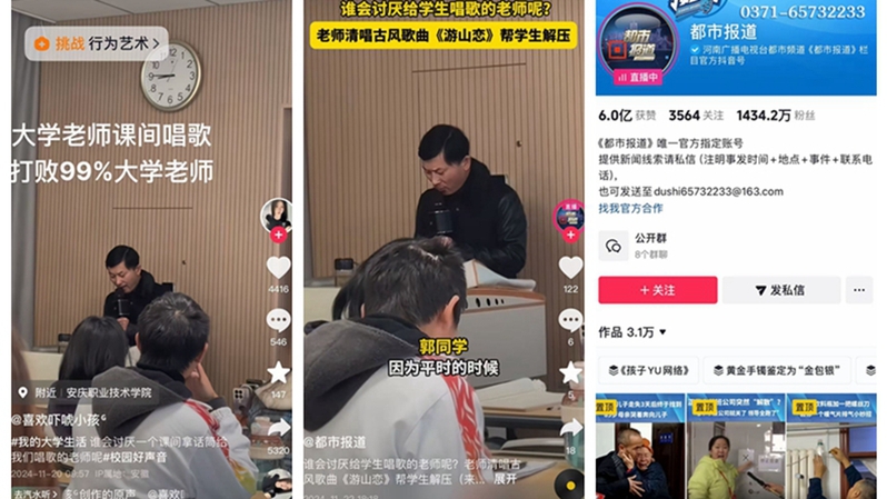 随着老师悠扬的歌声响起,教室里瞬间安静下来,同学们都沉浸在这美妙的旋律之中。有的同学闭上眼睛,用心感受着音乐的力量;有的同学面带微笑,眼神中充满了对老师的敬佩与喜爱;还有的同学轻轻跟着哼唱,仿佛在与老师进行一场心灵的交流。有同学记录下这温馨的一刻并发布在互联网上,师生间的温情互动收获无数网友好评。有这样一位在课间为同学们唱歌的好老师,谁会不喜欢呢。24级会计1班的张娜激动地说:“没想到课间能听到老师唱歌,感觉特别惊喜,老师的歌声让我们在紧张的学习之余得到了放松,也让我们感受到老师对我们的关爱。”