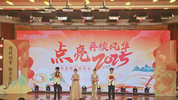 祥蛇舞盛世,新元启华章。12月30日晚,我校“再续风华 点亮2025”元旦师生联欢晚会在图文一楼报告厅圆满举行。校党委副书记、校长毕明生,党委副书记李克让,党委委员谭维奇、程飞、陈继平、高润霞、吴何珍、李五一,各二级学院、职能处室主要负责同志和师生代表600余人现场观看了晚会,团市委书记项薇、安徽黄梅戏艺术职业学院师生代表,受邀观看晚会。晚会全程进行线上现场直播,超万余名观众在云端共赏我校岁末文艺盛宴。
