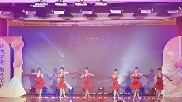 晚会在活力四射的开场舞《加油!Amigo》中拉开精彩序幕,啦啦操活力飞扬,拉丁舞热情奔放;吉他弹唱《那些花儿》,表演者用动听悦耳的歌声赢得了观众的热烈掌声;《茉莉花》的舞者们身姿轻盈、舞步翩跹;街舞《POP!》凭借利落的动作与精准卡点,爆发出超强力量感;青春宣讲《“常”探戏韵》与黄梅戏《别洞观景》珠联璧合,生动展现黄梅戏的婉转唱腔;舞蹈《Left·right》,舞者们以轻快而富有节奏感的脚步动作开启表演,每一步都精准地踩在音乐的节拍上,她们旋转、跳跃,每一个转身都带着自信与洒脱;歌曲《爸爸妈妈》深情演绎,触动人心,传递出深厚亲情;舞蹈《一梦敦煌》以其独特的艺术风格和强烈的视觉冲击给人留下了深刻的印象,以绚丽服饰、优美舞姿再现敦煌文化的震撼之美。