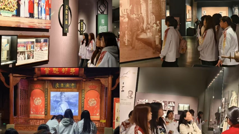 在安庆博物馆黄梅戏专题展厅,同学们在讲解员的引导下,系统开展了黄梅戏文化溯源。通过参观珍贵戏曲文物、文献和影像资料,同学们在黄梅戏从民间小调发展到体系化剧种的艺术嬗变过程中,深刻感受到了黄梅戏所承载的历史厚度与人文温度,激活了青年学生文化基因的传承动能。